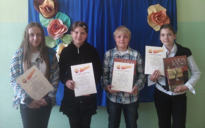 Michał Laskowski SP nr 1 w Chojnicach, Sara Roicka SP nr 3 w Chojnicach, Martyna Sołtysiak SP nr 5 w Chojnicach, Natalia Czarnowska SP w Nieżychowicach.