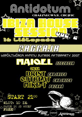 Po ogromnym sukcesie pierwszej edycji imprezy Ibiza House Session, już w piątek 16 listopada za sprawą klubu Antidotum po raz kolejny przeniesiecie się na jedną z najgorętszych wysp świata by poczuć klimat jakiego nie można spotkać nigdzie indziej. Wciągające house’owe rytmy z dużą ilością funky, vocalu a także z domieszką electro przeniosą Was w zupełnie inne miejsce – na wyspę, gdzie muzyka ma większe prawa niż cokolwiek innego, w świat niekończącej się imprezy.- Ibiza House Session vol.2