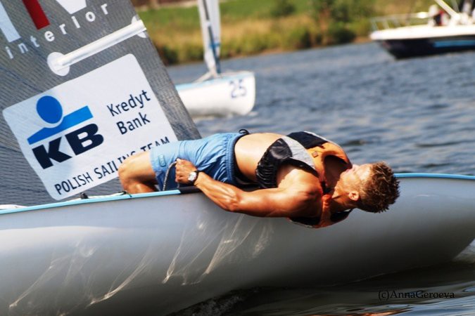 M.W: Dwa ostatnie wyścigi były z trochę większym wiatrem, 8-10 węzłów. W tych warunkach dozwolony był free pumping (czyli zagarnianie powietrza żaglem w podobny sposób jak wodę wiosłem). Ja w takich warunkach jestem jednym z najlepszych w stawce i bardzo to mi pomogło.