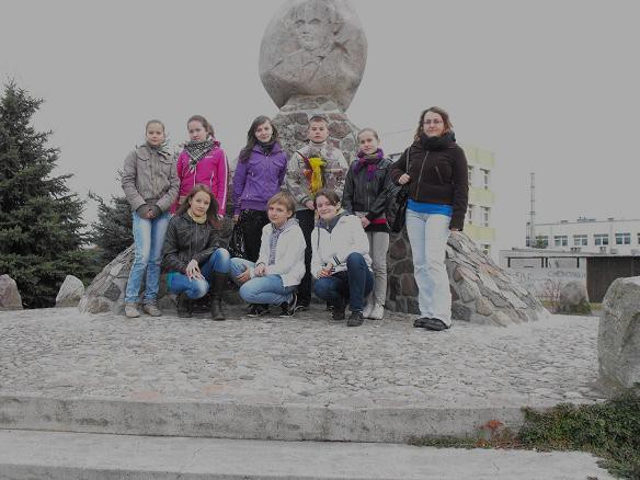 Pamięć o Wielkim Kaszubie została również uczczona przy jego pomniku w Brusach i pamiątkowej tablicy w Czarnowie – miejscu jego urodzenia. Grupa uczniów obejrzała także wystawę poplenerową VII Ogólnopolskiego Pleneru Plastycznego w Męcikale, która znajduje się w Chacie Kaszubskiej w Brusach Jagliach. Dzieci i młodzież wysłuchały bardzo interesującej prezentacji na temat zgromadzonych eksponatów, które w większości pochodzą z domostw gminy Brusy, a rzadko już korzysta się z nich we współczesnych gospodarstwach domowych. Po Chacie Kaszubskiej oprowadzał nas p. Krzysztof Gradowski, a opiekę nad uczniami sprawowały: p. Justyna Górska i p. Anna Klonowska-Dorszyńska.