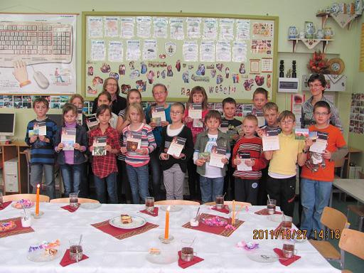 Członkowie SKC przez kilka kolejnych dni odwiedzali uczniów poszczególnych klas ze skarbonkami, do których chętni mogli wrzucać swe dary. W czwartek 27 października nastąpiło podsumowanie przeprowadzonej akcji z udziałem pani dyrektor Reginy Leszkowskiej. Pani dyrektor podziękowała uczniom za zaangażowanie się w pomoc dla innych oraz wręczyła wszystkim podziękowania i drobne upominki – książeczki z serii „Perełki”. Koordynatorem dzieła pomocy była pani Gabriela Lepak.