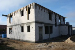 - budowę budynku parterowego z poddaszem użytkowym z wbudowanym garażem o dwóch stanowiskach postojowych,