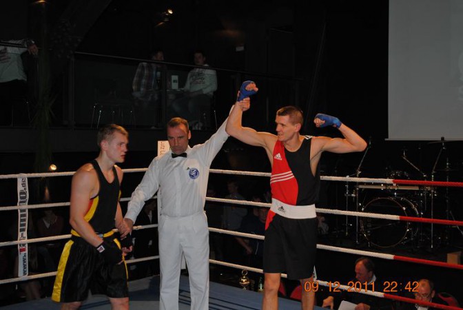Senior 64 kg Marcin Łęgowski podobnie jak jego młodszy brat pokazał na ringu dawkę solidnego boksu pokonując jednogłośnie 5:0 Michaela Gasselbacha.