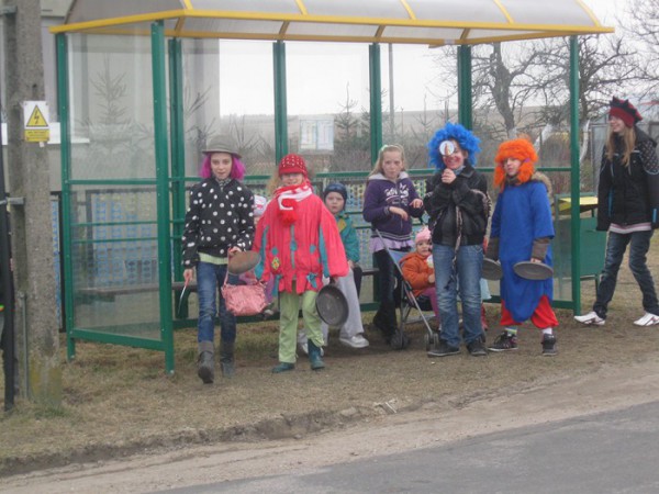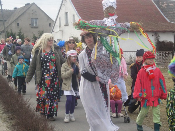 Tradycją w naszej wsi stał się pierwszy dzień wiosny, zawsze witamy go głośno i kolorowo. Tego też dnia zapraszamy do korowodu radnego gminy Chojnice Benedykta Jażdżewskiego, który tego dnia obchodzi imieniny i urodziny, gościliśmy także członków rady sołeckiej, rodziców, a nawet niemowlęta w wózkach.