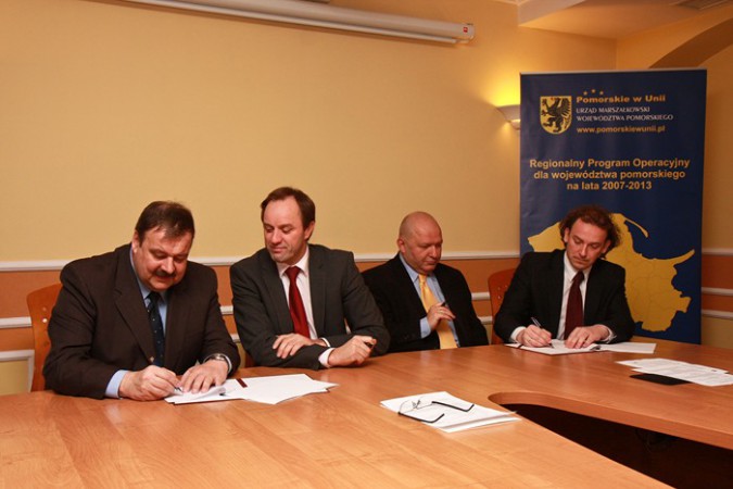 Z satysfakcją informujemy, że w dniu wczorajszym, 4 kwietnia br., została podpisana umowa na dofinansowanie projektu pn. „Budowa tras rowerowych i infrastruktury turystycznej w powiecie chojnickim w ramach programu Kaszubska Marszruta” w ramach Regionalnego Programu Operacyjnego dla Województwa Pomorskiego na lata 2007-2013. Umowę sygnowali - w imieniu Samorządu Województwa Pomorskiego Marszałek Mieczysław Struk i Wicemarszałek Wiesław Byczkowski, a w imieniu Powiatu Chojnickiego Starosta Stanisław Skaja i Członek Zarządu Marek Szczepański. Całkowita wartość projektu opiewa na kwotę 21 138 705,83zł (koszty kwalifikowane wynoszą 20 807 890,71zł), a wartość dofinansowania stanowi 47,29% kosztów i wynosi 9 840 051,52zł.