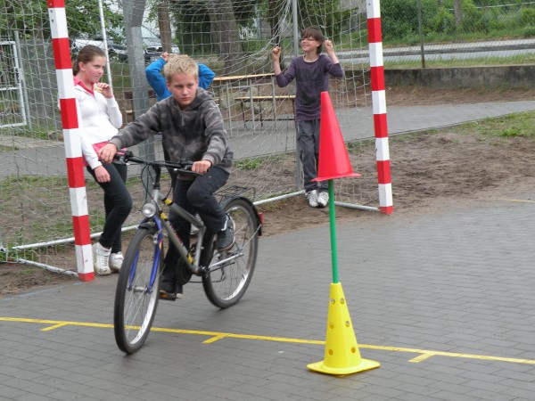 Dnia 13.06.1012 r. w Szkole Podstawowej w Męcikale uczniowie klasy czwartej zdawali egzamin praktyczny na kartę rowerową. W wielkim stresie i pod czujnym okiem policjanta, każdy zdający musiał pokonać tor przeszkód. Wszystkim udało się pomyślnie zaliczyć część teoretyczną i praktyczną egzaminu. Teraz pozostaje im tylko oczekiwanie na kartę rowerową i