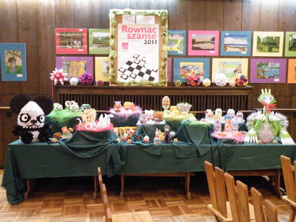 Na zakończeniu podziękowano uczestnikom za wytrwałość i zaangażowanie. Rodzice i nauczyciele zapoznali się z tym, co robiono podczas trwania ponad 50 godzin spotkań warsztatowych. Mieli również możliwość obejrzenia wystawy, która ukazywała efekty pracy twórczej uczestników. Spotkanie urozmaicono wyświetleniem filmów z cotygodniowych spotkań. Zebrani dowiedzieli się o prowadzonych warsztatach z zakresu origami płaskiego, modułowego i kusudamy. Ponadto młodzież poinformowała zebranych o warsztatach, które prowadziła na terenie gminy Brusy w Brusach, Leśnie, Męcikale i Kosobudach dla dzieci, młodzieży i osób starszych. Młodzi uczestnicy mieli okazję wcielać się w rolę „nauczycieli” i przekazać nabytą wiedzę kolejnym chętnym, chcącym zapoznać się z techniką origami.