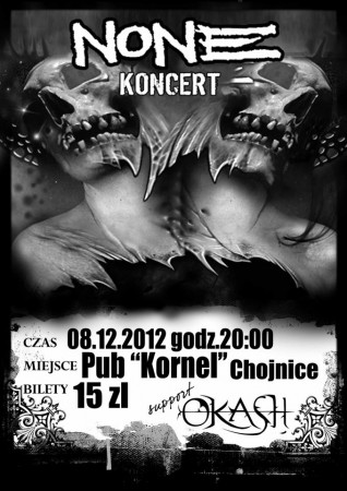 Koncert None i Okash- pub Kornel 8.12 godzina 20.00. Bilety w cenie 15 zł.