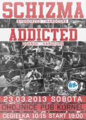 Koncert Schizmy i Addicted - pub Kornel 23.03 godzina 19.00. Bilety: przedsprzedaż 10 zł, w dniu koncertu 15 zł.