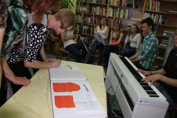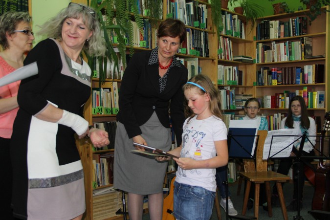 „Czytelnicy 2012 Roku” z rąk sekretarz Urzędu Gminy, Pani Marioli Rodzeń oraz radnej Rady Miejskiej, Pani Bernadety Niebrzydowskiej, otrzymali pamiątkowe statuetki, dyplomy oraz książki. Na zakończenie laureaci wpisali się do kroniki. Całe spotkanie uświetniły występy dzieci i młodzieży uczęszczającej na zajęcia Pani Agnieszki Mrozek odbywające się w Centrum Kultury i Biblioteki. Początek spotkania umiliły dwa utwory na gitarę klasyczną: "Melodia" autorstwa Fernanda Sora zagrany przez Anię Słomińską i Wiktorię Rekowską oraz "Moderato" Ferdinando Carulliego w wykonaniu Moniki Wardyn, Angeliki Gilmeister. Następnie Justyna Jażdżewska zagrała i zaśpiewała piosenkę Starego Dobrego Małżeństwa "Czarny blues o czwartej nad ranem". Kolejne występy artystyczne to utwory solowe na gitarach klasycznych: Martyny Pałuczak "Speak softly love" z filmu Ojciec chrzestny oraz Karoliny Literskiej "Gonna lay down" standard muzyki gospel. Spotkanie zakończył występ Zespołu Staccato, który zaśpiewał kilka utworów z zakresu poezji śpiewanej.