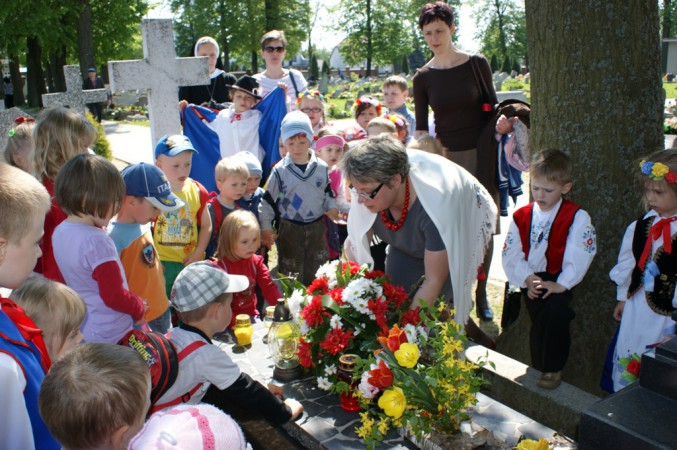 Wybór terminu eliminacji powiatowych był celowy, ponieważ 16 maja obchodziliśmy 127 rocznicę urodzin Jana Karnowskiego patrona naszej placówki. W związku z tym grupa dzieci biorących udział w konkursie wraz z organizatorami złożyli wiązankę na grobie zmarłego patrona.