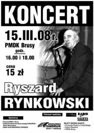 15 marca 2008 na deskach sceny Powiatowego Młodzieżowego Domu Kultury w Brusach po raz kolejny zagra i zaśpiewa Ryszard Rynkowski. Koncerty odbędą się o godz. 16.00 i 18.00. Z pierwszą wizytą artysta odwiedził Brusy 11 marca 2006 roku. Wystąpił wtedy również z dwoma koncertami, które zgromadziły liczną publiczność w każdym wieku.