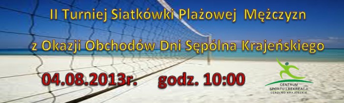 Centrum Sportu i Rekreacji w Sępólnie Krajeńskim zaprasza na II Turniej Siatkówki Plażowej Mężczyzn z Okazji Obchodów Dni Sępólna Krajeńskiego.