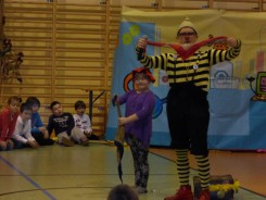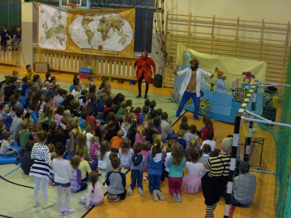 W spektaklu pn. "Superbohaterowie i Profesorek Wodorek” wystąpili dla dzieci aktorzy grupy teatralnej „Pomarańczowy Cylinder” i Klaun KOKO z Torunia. Tematyka spektaklu dotyczyła: mycia rąk przed jedzeniem, higieny jamy ustnej, zagrożenia ze strony wirusów i bakterii oraz odpowiedniego ubierania się. W spektaklu działo się tyle, że aż trudno to opisać. Spektakl okazał się pełen dobrych żartów i skeczy tak, że momentami nie wiadomo było czy to teatr czy kabaret.