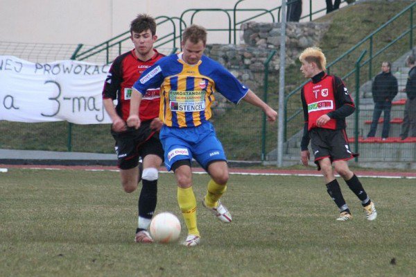 Mecz ułożył się jednak dla przyjezdnych najlepiej, jak mógł. Już w 3 minucie Tomasz Pestka zdobył pierwszego gola. Jak się później okazało, Pestka był zawodnikiem, na którego miejscowi do końca meczu nie znaleźli recepty. Biegał szybciej od wszystkich rywali, mijał ich, jak chciał. Jedyną możliwością zatrzymania Pestki było jego sfaulowanie, co też gracze Powiśla czynili. W ofensywie byli dość nieporadni – próbowali grać piłką, ale wszystko kończyło się na naszych obrońcach.