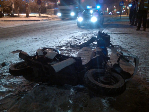 Do wypadku doszło wczoraj wieczorem (30.12) w Sępolnie Krajeńskim na pl. Wolności około godz 18.50. Ze wstępnych ustaleń wynika, że kierujący fiatem punto wymusił pierwszeństwo przejazdu, na skutek czego doszło do zderzenia z prawidłowo jadącym motocyklistą. W zdarzeniu brał udział także osobowy renault laguna, który aby zapobiec zderzeniu z wywróconym motocyklistą, odbił w lewo i uderzył w barierki. Motocyklista z obrażeniami ciała został odwieziony do szpitala. Przez 1,5 godziny ruch w tym miejscu odbywał się wahadłowo.