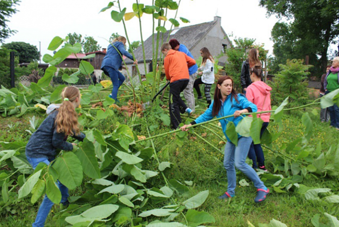 Dnia 22.06.2015r. uczniowie i Panie z Zaborskiego Parku Krajobrazowego zapoznały z akcją członkinie KGW w Dąbrówce. Po prelekcjach i smakowitym poczęstunku wspólnie oznaczali i usuwali gatunki inwazyjne. Szczegóły akcji prezentujemy na Facebook’u: „Obce gatunki inwazyjne? Nie, dziękuję! – akcja uczniów ze Sławęcina”.