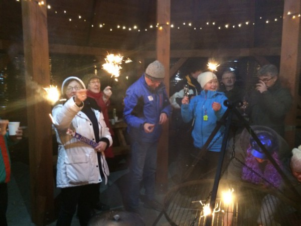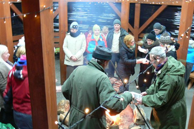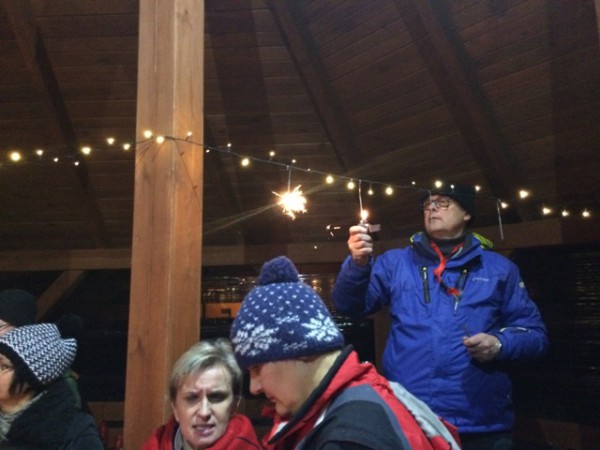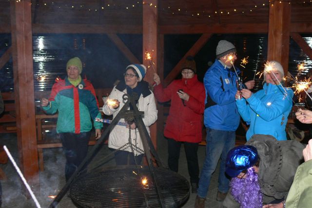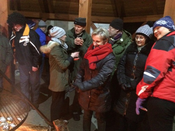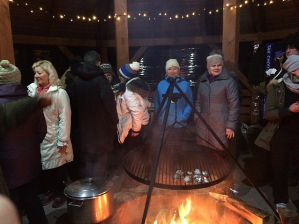 - Wprawdzie towarzyszył nam niewielki mróz, ale za to niebo bylo usiane gwiazdami, jak nigdzie indziej... Było cudownie i romantycznie. Przynajmniej tak mówili uczestnicy rajdu przy ognisku. Zakończenie mialo miejsce pod grzybkiem za Wyłuszczarnią Nasion w Klosnowie, po przejściu prawie 8 km lasami Nadleśnictwa Rytel. To dzięki gościnności Marka Pałaszyńskiego i pracowników Wyłuszczarni tam właśnie zorganizowaliśmy ognisko i poczęstunek z lampką szampana - relacjonuje Bożena Stępień.