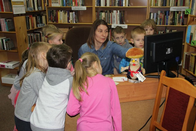 Dzieci dowiedziały się na czym polega praca w bibliotece, jaką drogę musi przejść książka, zanim zostanie postawiona na półce bibliotecznego regału, aby mogła zostać wypożyczona. Ponadto maluchy zapoznały się z bibliotecznym programem SOWA, dowiedziały się jak można zostać czytelnikiem biblioteki, jak należy zachować się w czytelni.