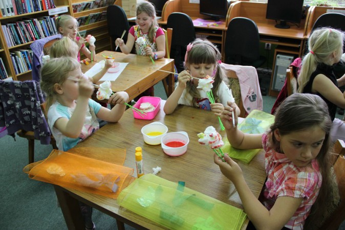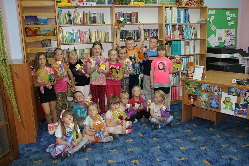 Tym razem tematyka cyklu „Czwartkowych spotkań w bibliotece” związana była z obchodami Dnia Matki. Dzieci przygotowały bukieciki kwiatów, jako prezent na święto dla swoich mam. Kwiatki zostały przygotowane z płatków higienicznych.