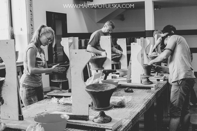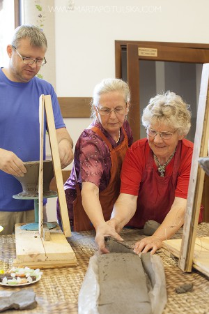 W pierwszym etapie zadania uczestnicy przysposabiali różne techniki wykorzystania gliny. Po wykonaniu licznych płaskorzeźb, puzderek, małych kubków, dzbanków i doniczek, członkowie grupy swoje siły przełożyli na zdecydowanie większe przedmioty, tworząc kilkudziesięciocentymetrowe dzbany i donice. Odstawione do wyschnięcia będą czekały na wsad do pieca.
