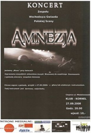 Koncert zespołu Amnezja odbędzie się 27 września o godzinie 20.00 w klubie Kornel, wstęp: 10zł.