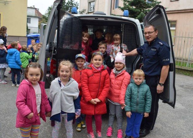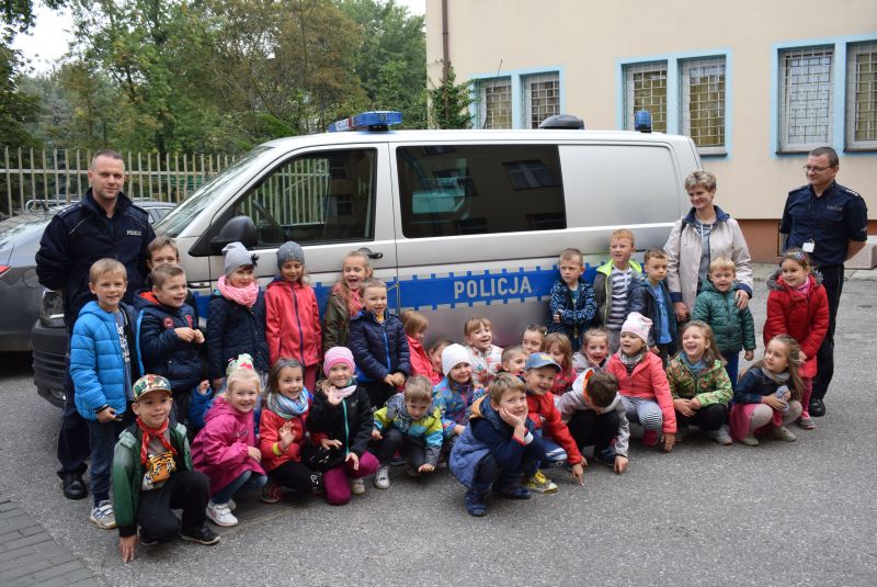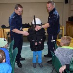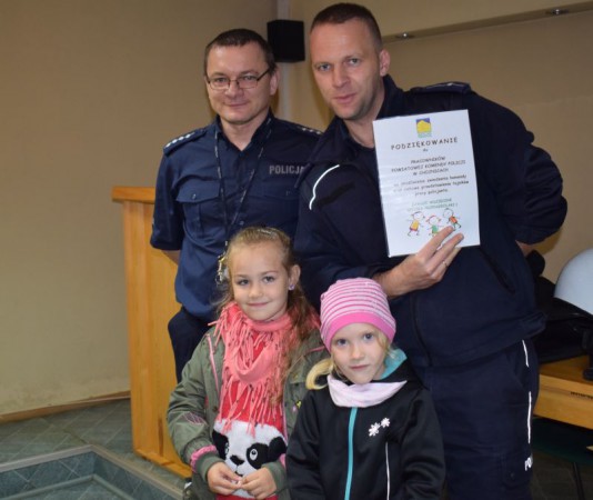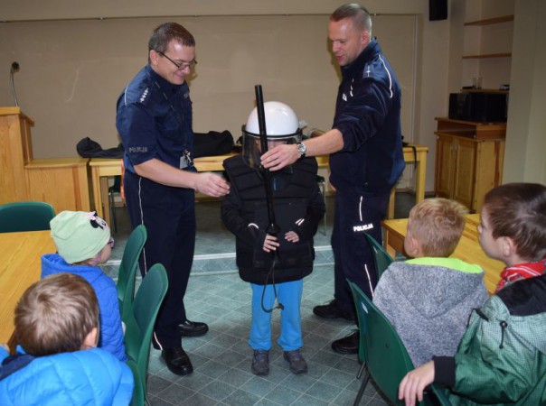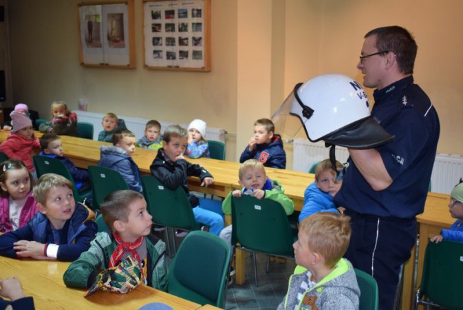 Spotkanie było również okazją do przybliżenia maluchom podstawowych zasad bezpieczeństwa - zarówno w szkole, na drodze, jak i w miejscu zamieszkania. Policjanci tłumaczyli jaką rolę pełnią odblaski w bezpiecznym poruszaniu się po drogach, jak zadbać o bezpieczeństwo własne oraz osób w najbliższym otoczeniu. Dzieci chętnie uczestniczyły w dyskusji i chwaliły się posiadaną wiedzą. Na zakończenie otrzymały słodki poczęstunek, a same, na pamiątkę spotkania, przekazały policjantom pisemne podziękowanie.