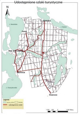 e. wszystkie szlaki biegnące wzdłuż tzw. drogi „pilskiej” tj. z miejscowości Bachorze do miejscowości Owink,