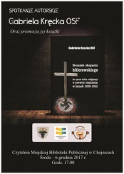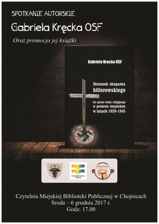 Tym razem w ramach serii „Monografie Chojnickie” ukazała się publikacja s. Gabrieli Kręckiej pt. '" Stosunek okupanta hitlerowskiego do spraw kultu religijnego w powiecie chojnickim w latach 1939-1945". Promocja książki odbędzie się 6 grudnia (środa) o godzinie 17 w Czytelni. - Serdecznie zapraszamy - zachęca Przemysław Zientkowski pełnomocnik burmistrza ds. rozwoju i współpracy naukowej.