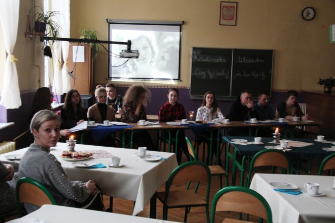 Tradycją biblioteki szkolnej Technikum nr 3 stała się Kawiarenka Literacka, w której gościmy poetów, pisarzy lub postacie historyczne. Ta, która odbyła się przedwczoraj, 23 stycznia poświęcona była Agnieszce Osieckiej – poetce, pisarce, reżyserce, dziennikarce, autorce ponad dwóch tysięcy tekstów, skeczy i utworów scenicznych. I znów przy świecach, poczęstunku i kawie, przy gościach, którzy nas odwiedzili, wysłuchaliśmy wierszy i piosenek, do których teksty napisała Agnieszka Osiecka.