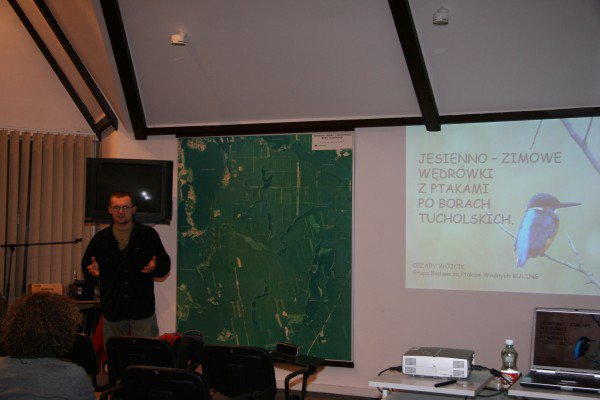 W ostatni czwartek października w Parku Narodowym „Bory Tucholskie” odbył się kolejny wykład dla miłośników przyrody. Było to ostatnie czwartkowe spotkanie z przyrodą w tym roku kalendarzowym. Następne dopiero w nowym roku.Na spotkaniu kończącym cykl roku 2008 gościł pan Cezary Wójcik, który działa w Stowarzyszeniu Grupa Badawcza Ptaków Wodnych „Kuling”. Tytuł wykładu brzmiał: „Jesienno-zimowe wędrówki z ptakami po Borach Tucholskich” .