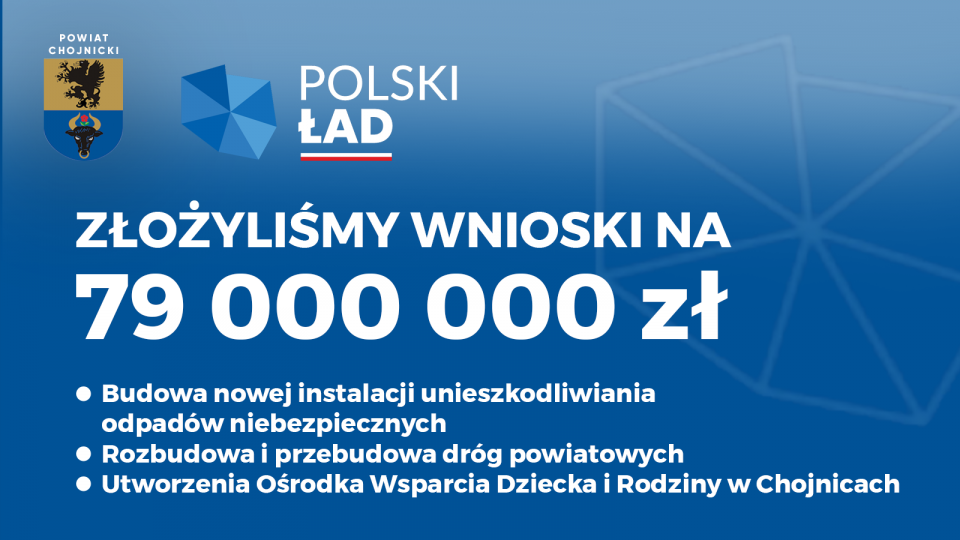 W ramach programu Nowy Ład Powiat Chojnicki złożył maksymalną ilość wniosków na 3 inwestycje.