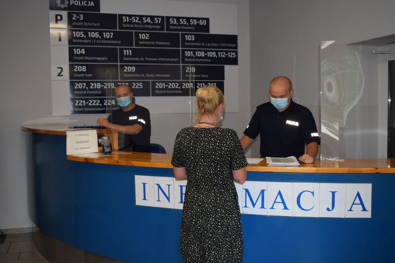 - Komendzie Powiatowej Policji w Chojnicach przy ul. Warszawskiej 13 3 w dni powszednie w godzinach 8:00 - 15:00 po wcześniejszym umówieniu się telefonicznie pod numerem telefonu: 47 74 36 124