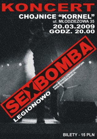 Koncert Sexbomba- 20 marca godzina 20.00- Pub Kornel. Bilety w cenie: 15 zł