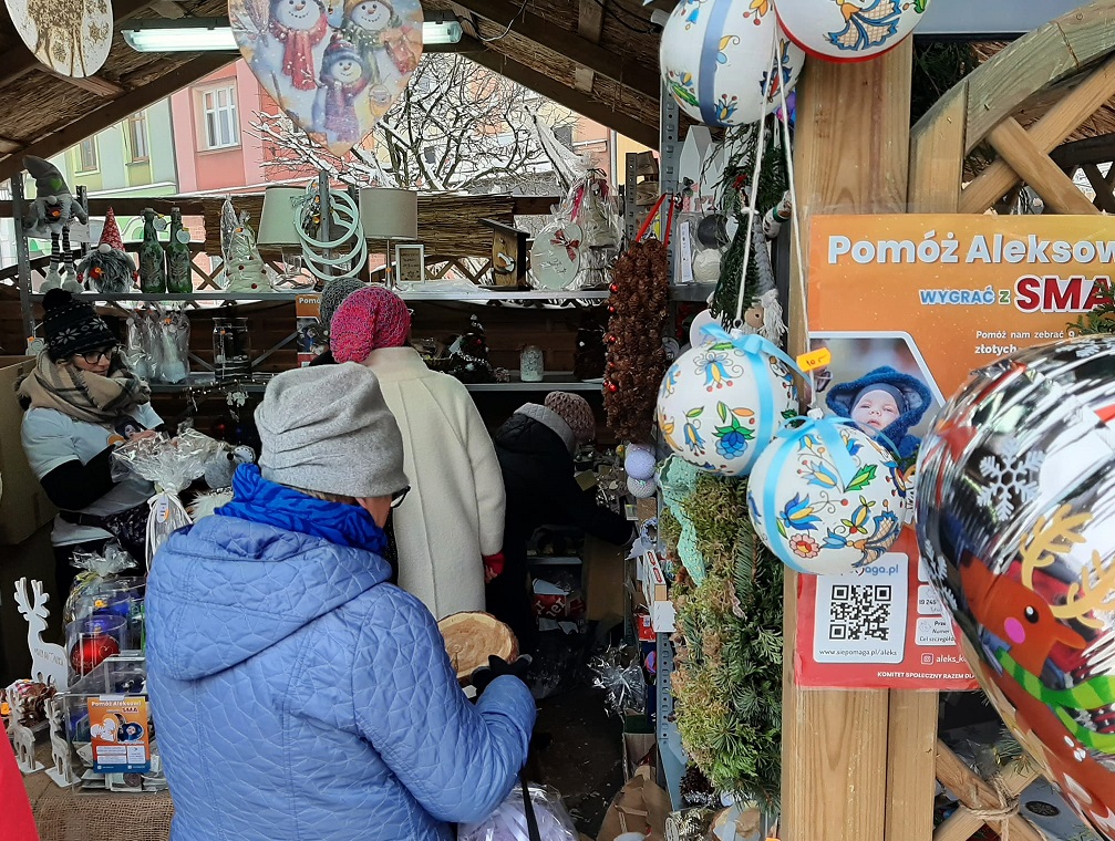 Do jutra (12.12) do godziny 17:00 na płycie Starego Rynku trwa Jarmark Bożonarodzeniowy. To doskonała okazja, aby zaopatrzyć się w ozdoby świąteczne, lokalne przysmaki, ale i drobne upominki dla naszych najbliższych. Robiąc zakupy w chatce "Serce dla Aleksa" możemy wesprzeć leczenie 5-miesięcznego chojniczanina. Na rzecz chłopca prowadzona jest także sprzedaż choinek.