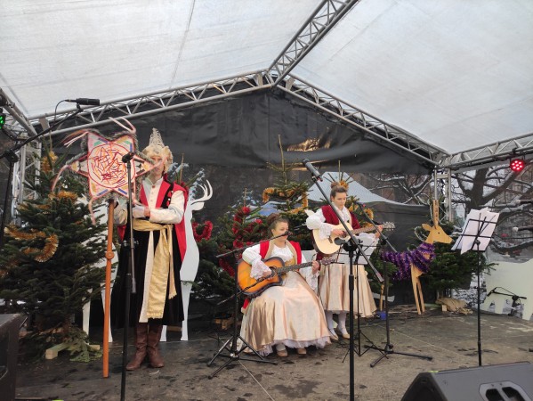 Staropolskie Kolędowanie w wykonaniu Dworku Polskiego swój początek miało w tym roku podczas XIII Jarmarku Bożonarodzeniowego w Chojnicach, organizowanego przez Promocję Regionu Chojnickiego. Zespół zaprezentował się zarówno od strony artystycznej, jak i kulinarnej. W kameralnej atmosferze nadchodzących świąt Bożego Narodzenia młodzież kolędowała wspólnie ze zgromadzoną pod sceną publicznością. Natomiast na stoisku Dworku Polskiego czekały świąteczne potrawy i wypieki.