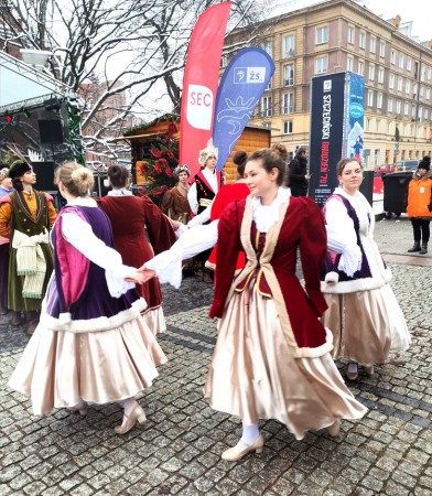 Kolejny koncert miał miejsce 12 grudnia w Szczecinie, na specjalne zaproszenie Żeglugi Szczecińskiej. - Tam między barwnymi straganami Kolorowej Alei zatańczyliśmy m.in. poloneza oraz „W żłobie leży”. Melodia tej kolędy nawiązuje do poloneza koronacyjnego Władysława IV Wazy. Polskie kolędy są tak radosne, że niejednego przechodnia zachęciły nie tylko do śpiewu, ale i do wesołego kołysania. Wszak ich melodia niejednokrotnie układa się do rytmów polskich tańców - mówi Anna Piekarska - Więcławek, prezeska stowarzyszenia. Zespół zaprezentował osobno polskie tańce.