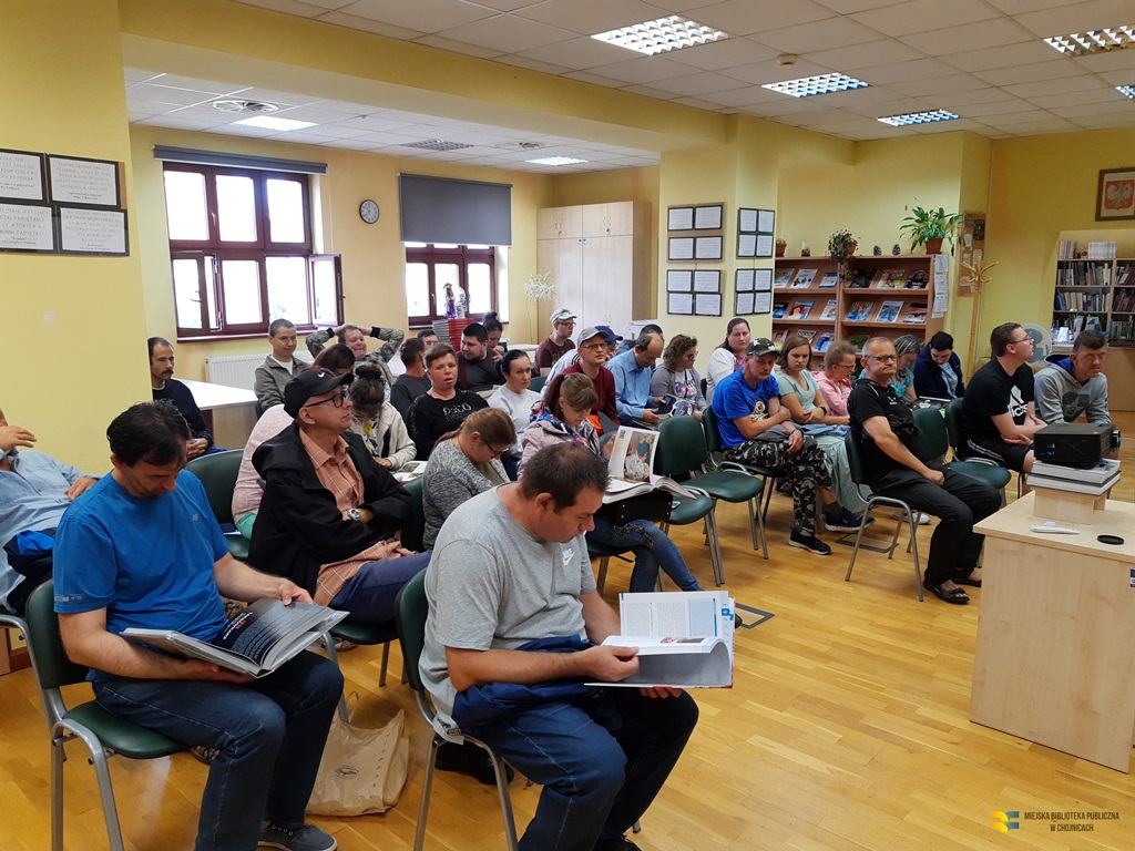 Następnie obie grupy udały się do Czytelni, gdzie wysłuchały informacji o specyfice tego działu i jego księgozbiorze. Podopieczni ŚDS obejrzeli także prezentację o zabytkach Chojnic, którą przedstawiła bibliotekarka Weronika Sadowska. Zobaczyli również albumy o Chojnicach.