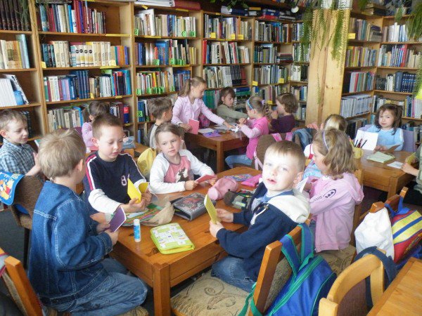 Interesującą lekcję biblioteczną pt. "Jak powstaje książka?" przeprowadziła pani Anna Wirkus pracownik oddziału dziecięcego. Celem lekcji bibliotecznej było uświadomienie dzieciom, jak powstaje książka. Dzieci chętnie odpowiadały na pytania i z zaciekawieniem uczestniczyły w zajęciach.