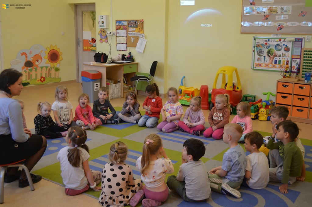 Bibliotekarka odwiedziła trzylatki z grupy Biedronki