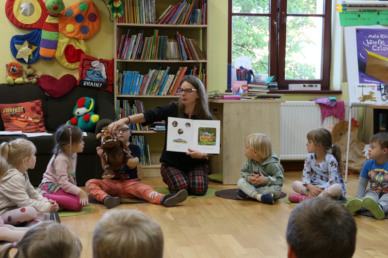 Bibliotekarka na wstępie pokazała pluszaka, który jest wierną kopią książkowego bohatera i zapytała maluchy, czy przypomina im jakieś zwierzątko. Jak się okazało przedszkolaki nie poznały bohatera i nic im znanego nie przypominał.