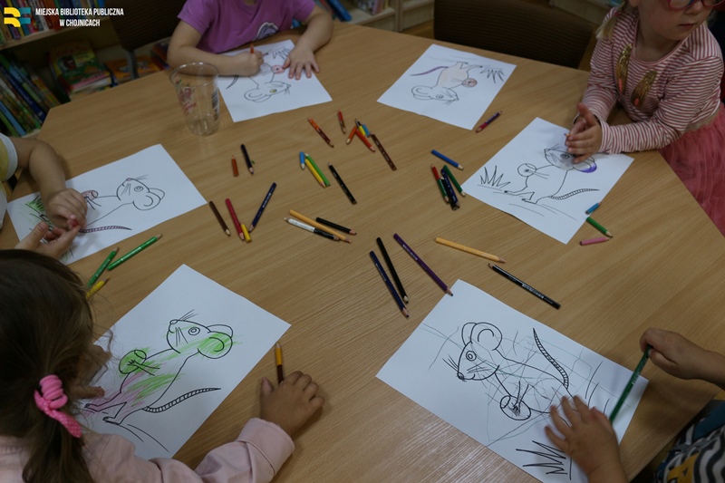 Po przeczytaniu opowiadania prowadząca zaprosiła przedszkolaki do zabawy ruchowej, która sprawiła wszystkim wiele radości. Następnie przyszedł czas na pracę plastyczną, która została wykonana bardzo dokładnie. Grupa mogła zabrać swoje prace do przedszkola, aby móc pokazać i opowiedzieć rodzicom, co ciekawego robiły w bibliotece.