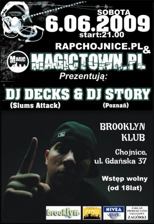 Regionalny portal rapowy RapChojnice.pl oraz jeden z największych w Polsce skateshop'ów internetowych mają zaszczyt zaprosić "wszystkich antyfanów radiowych mydlin na grubą imprezę", na której zagrają dwaj bardzo dobrze znani Dj'e! Reprezentanci wielkopolski - Dj Decks i Dj Story! Tych dwóch Panów z pewnością nie trzeba przedstawiać nikomu kto choć w małym stopniu miał styczność z czarnym brzmieniem!
