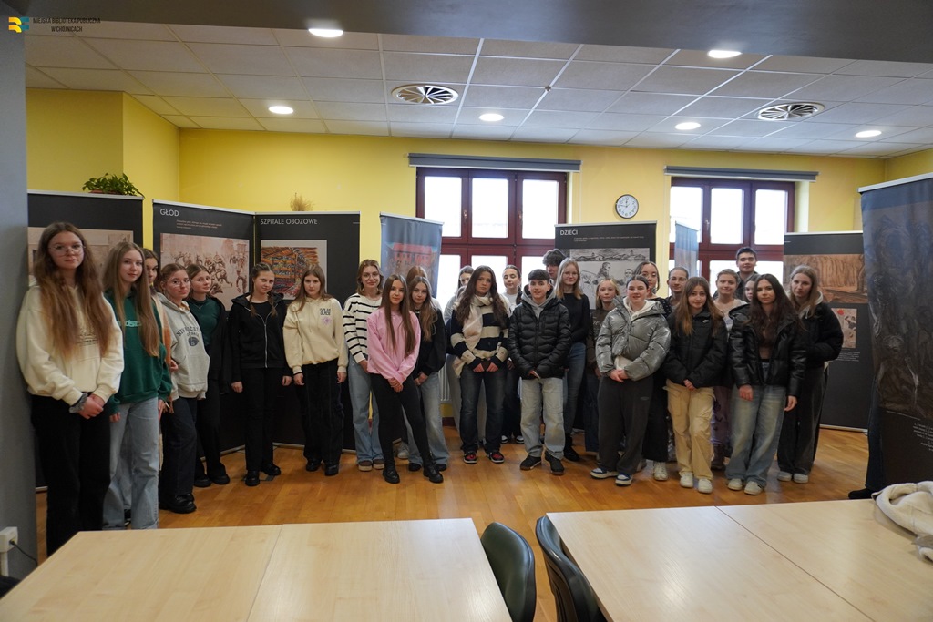 Wystawę „Doświadczenie Auschwitz w sztuce byłych więźniów” w czwartek 18 stycznia 2024 roku obejrzeli uczniowie II Liceum Ogólnokształcącego im. gen. Władysława Andersa w Chojnicach.