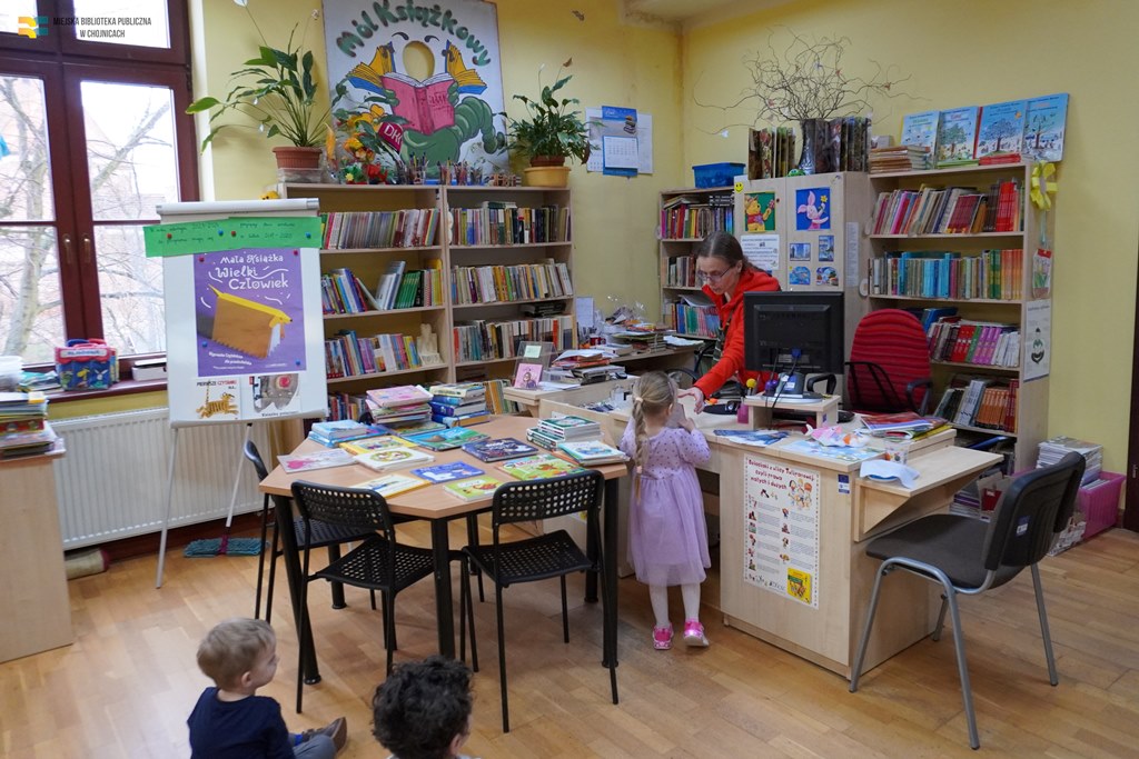 Podczas wizyty czterolatki zapoznały się z regulaminem oddziału i dowiedziały się, co trzeba zrobić, by móc wypożyczać książki. Obejrzały także księgozbiór przeznaczony dla młodszych czytelników oraz zaznajomiły się z pomieszczeniami wypożyczalni i czytelni. Dzieci miały również okazję zaobserwować, do czego w bibliotece służy czytnik kodów kreskowych.