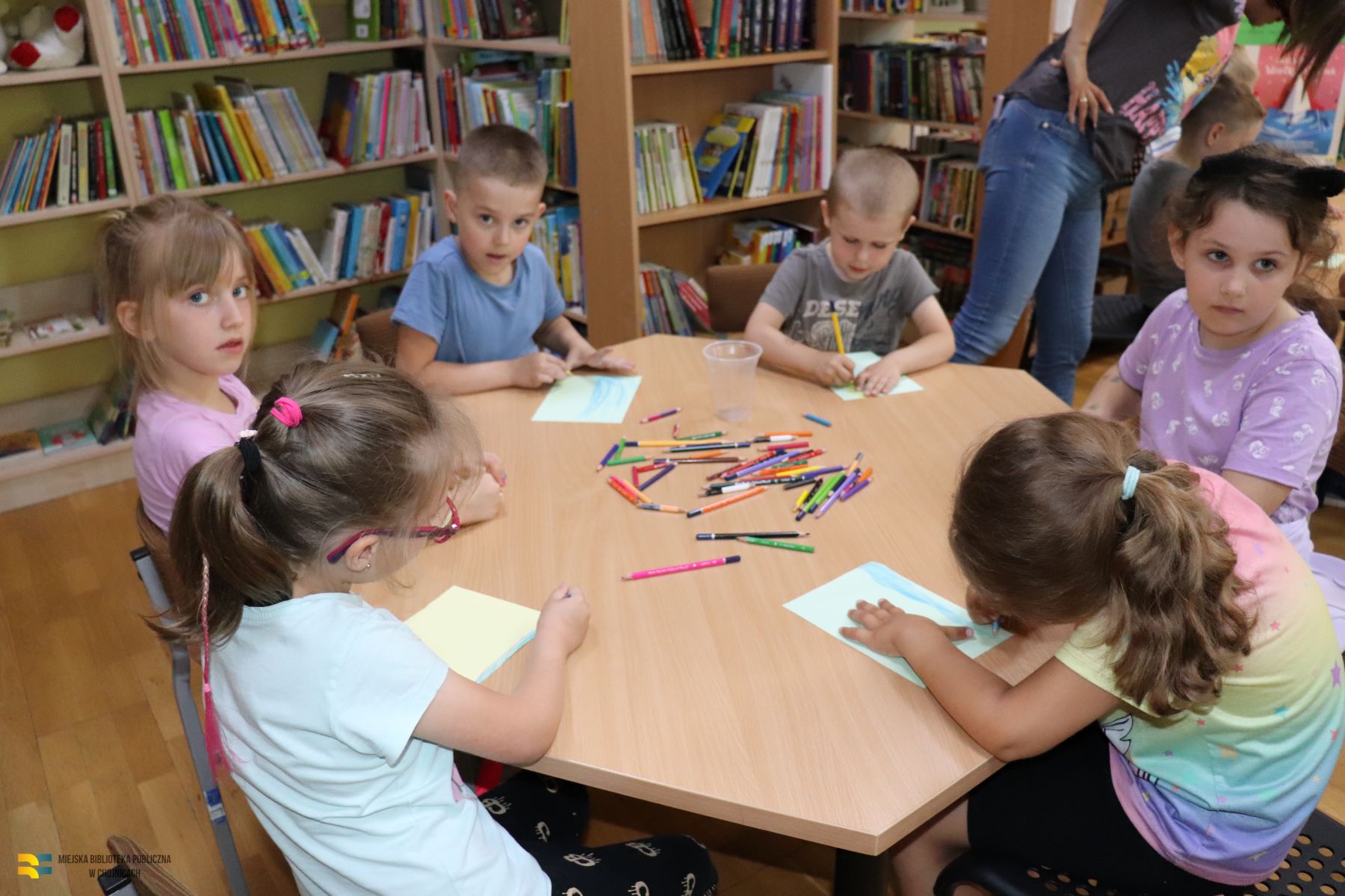 Przedszkolaki wysłuchały książki Magdaleny Sroki pt. „Lato nad morzem. Pory roku” z serii Przygody Fenka”. Było to ostatnie spotkanie tej grupy w bibliotece, od września dzieci rozpoczną naukę w pierwszej klasie.