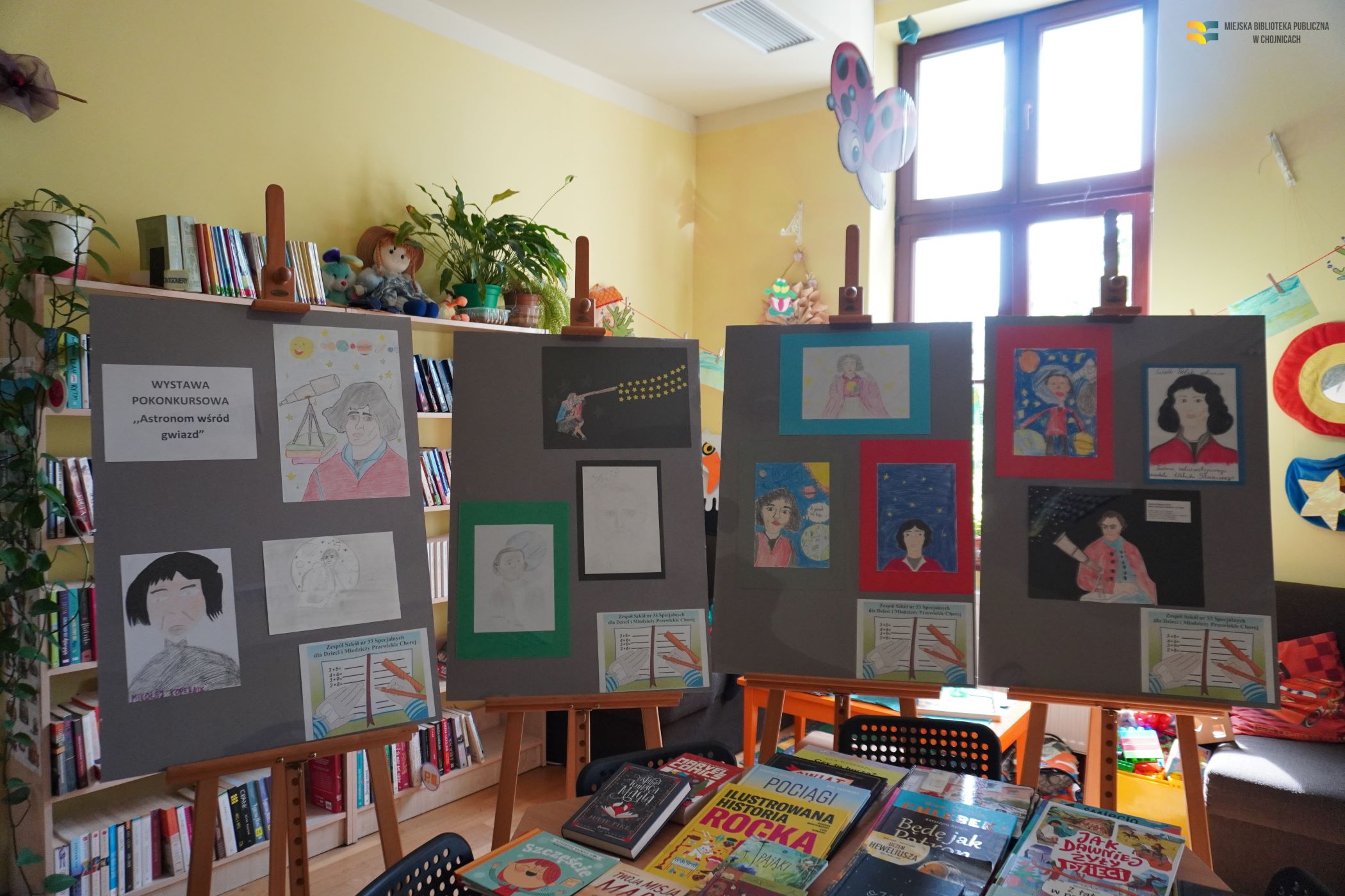 Od poniedziałku 24 czerwca 2024 roku w Wypożyczalni i Czytelni dla Dzieci Miejskiej Biblioteki Publicznej w Chojnicach można podziwiać prace pokonkursowe wykonane przez uczniów Zespołu Szkół nr 33 dla Dzieci i Młodzieży Przewlekle Chorej w Bydgoszczy pt. „Astronom wśród gwiazd”.