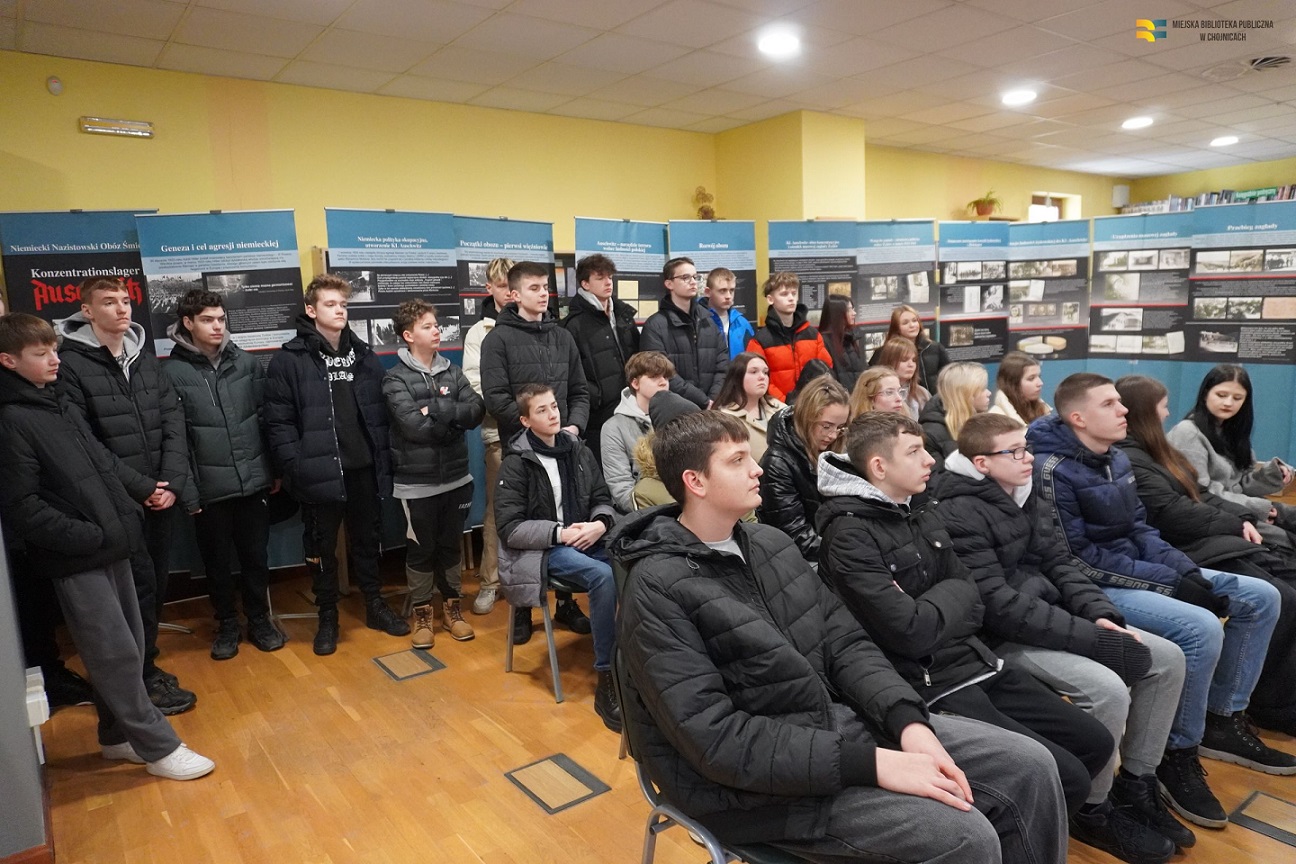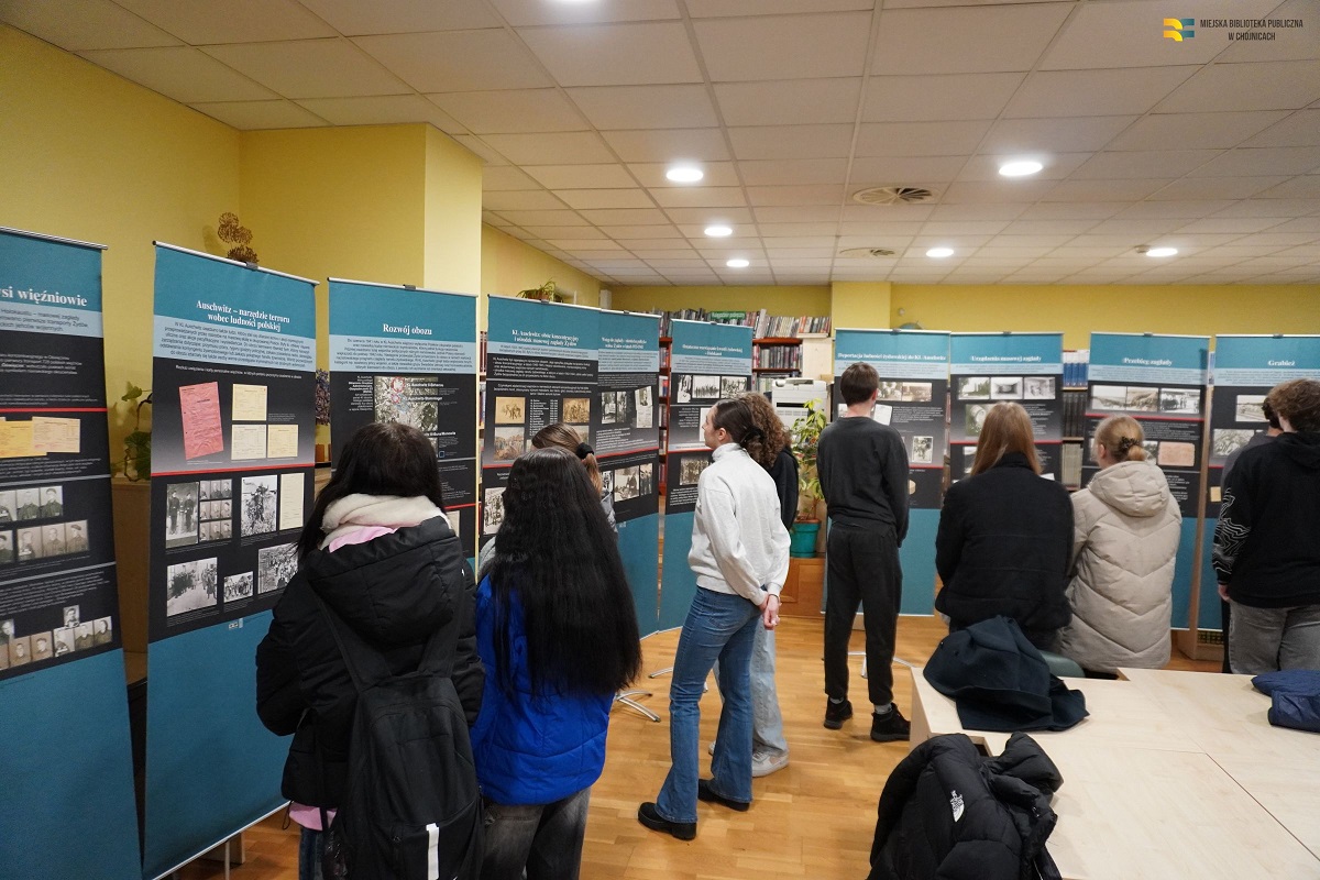 Do Czytelni Miejskiej Biblioteki Publicznej w Chojnicach przychodziły klasy z chojnickich szkół, żeby obejrzeć wystawę pt. „Obóz Zagłady Auschwitz-Birkenau”, która czynna była od wtorku 21 stycznia do poniedziałku 27 stycznia 2025 roku.