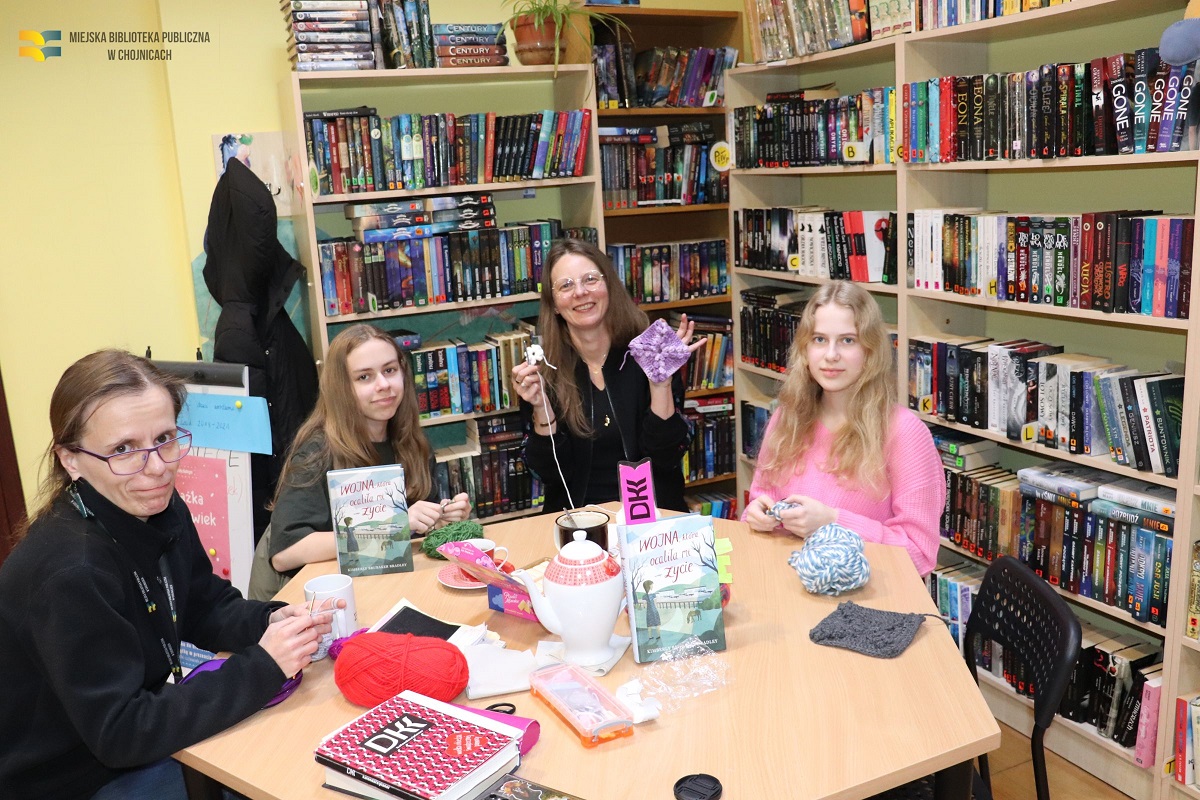 W czwartek 13 lutego 2025 roku w Wypożyczalni i Czytelni dla Dzieci odbyło się spotkanie młodzieżowego Dyskusyjnego Klubu Książki. Na dzień przed walentynkami klubowiczki i moderatorki obdarowały się nawzajem słodkościami i szydełkowymi serduszkami.