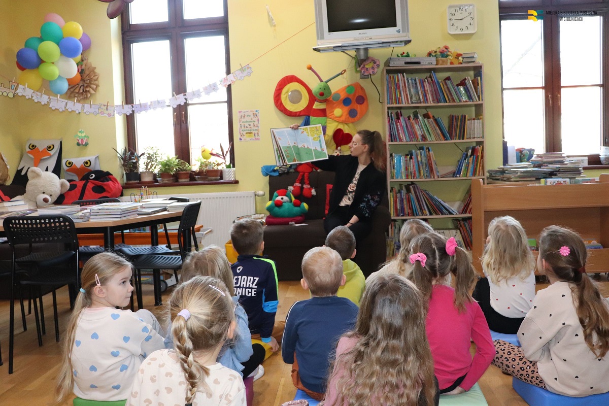 Bibliotekarka zaprosiła maluchy do zapoznania się z przygodami pechowego Krecika z książki pt. „Wielkie marzenie małego Krecika” autorstwa Toma Percivala. Bohater książki miał wielkie marzenie. Chciał być w czymś naprawdę dobry, ale nie potrafił znaleźć rzeczy, która wychodziłaby mu najlepiej. Gdy oglądał ptaki – chciał latać, gdy widział pływające kaczki – chciał pływać, a gdy patrzył na wiewiórkę – to bardzo chciał umieć skakać. Niestety, krety nie zostały do tego stworzone. Co więc miał ze sobą począć mały bohater książki?
